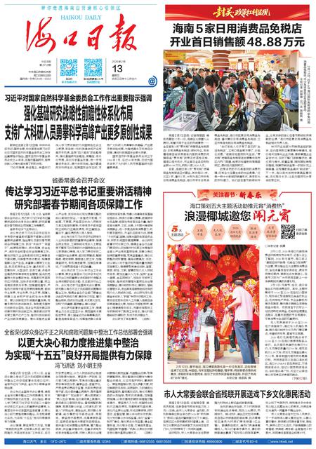 海南5家日用消费品免税店开业首日销售额48.88万元